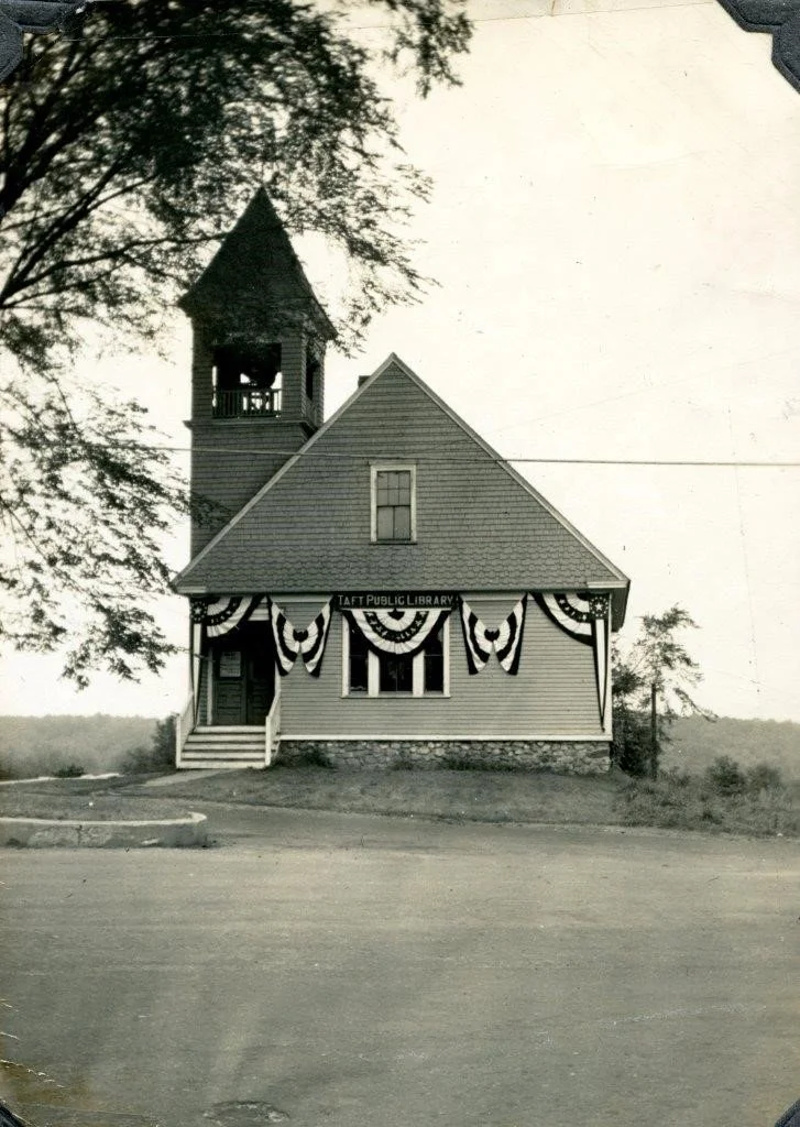 The Union Chapel was built in 1896. This congregation was active until 1914. At this time the use of the building had dwindled. In honor of her husband Arthur Taft, an avid reader, Rosa George Taft purchased the building in 1919 and donated it to the Town. In addition, she added a significant sum of money for the renovation and maintenance of the building.
